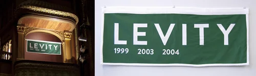 Banners for Live Art Magazine, Issue 2: Gravity, 2014. Edited by Amanda Herman. Academy of Music, Northampton, MA.